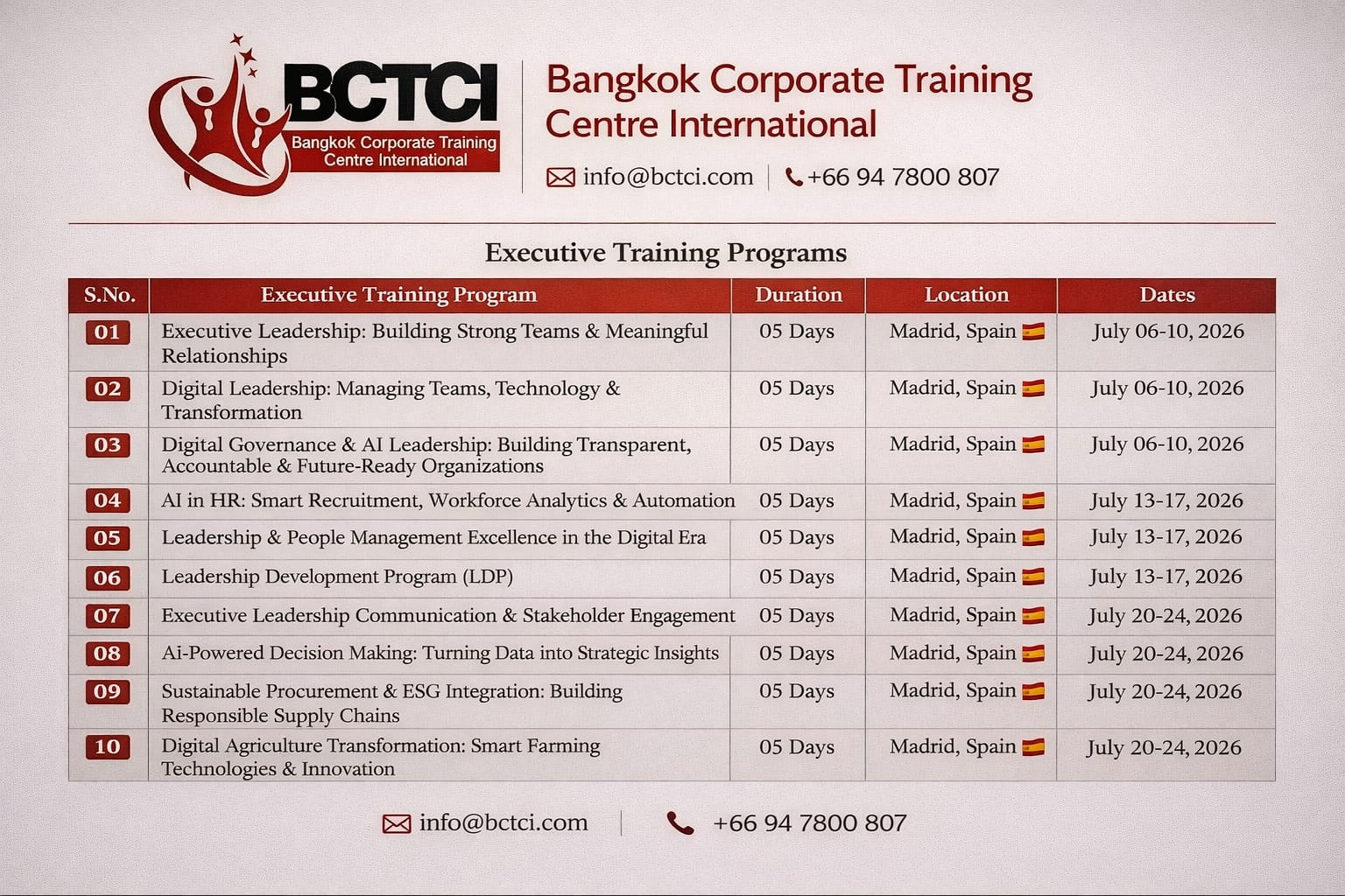 July Training Courses in Madrid, Spain