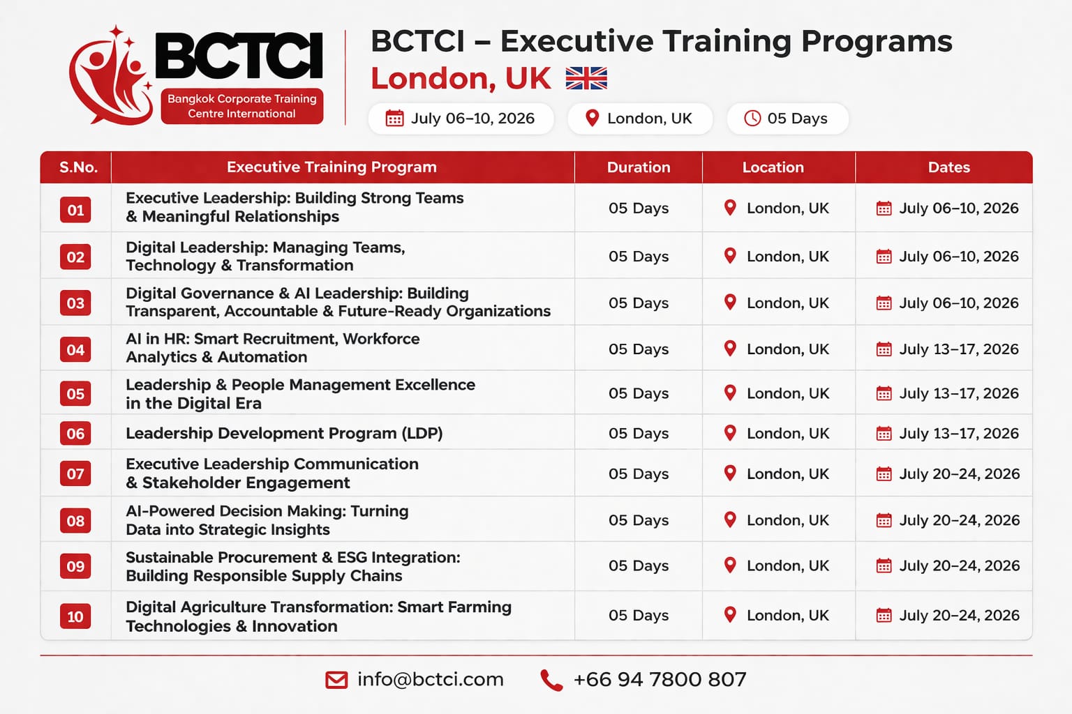 July Training Courses in London, UK